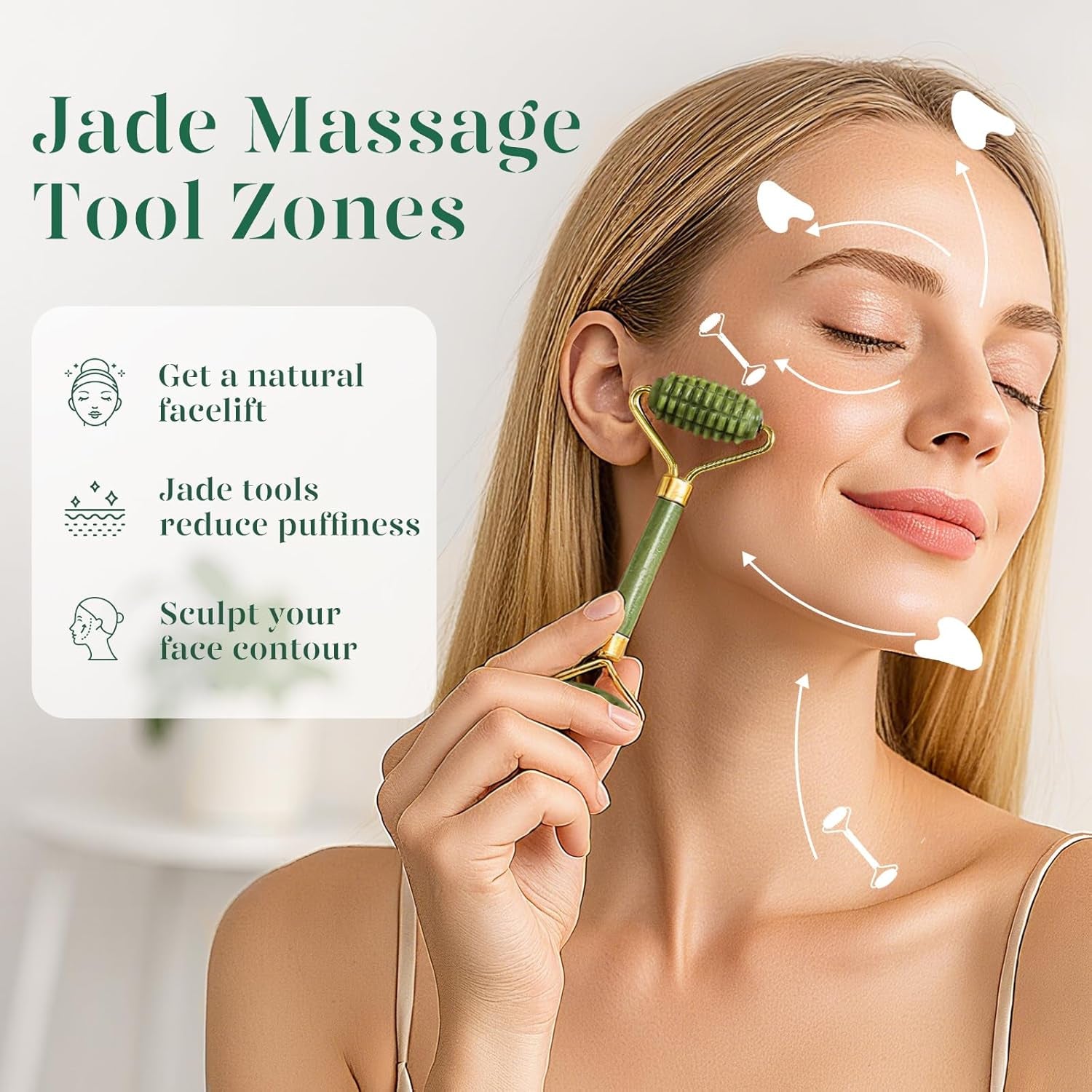 [Ridge Design for Enhanced Massage] Set includes jade roller with Ridge Design, gua sha tool, and bonus mini roller . Ridge side provides deep massage, firms skin. Fits daily skincare routine