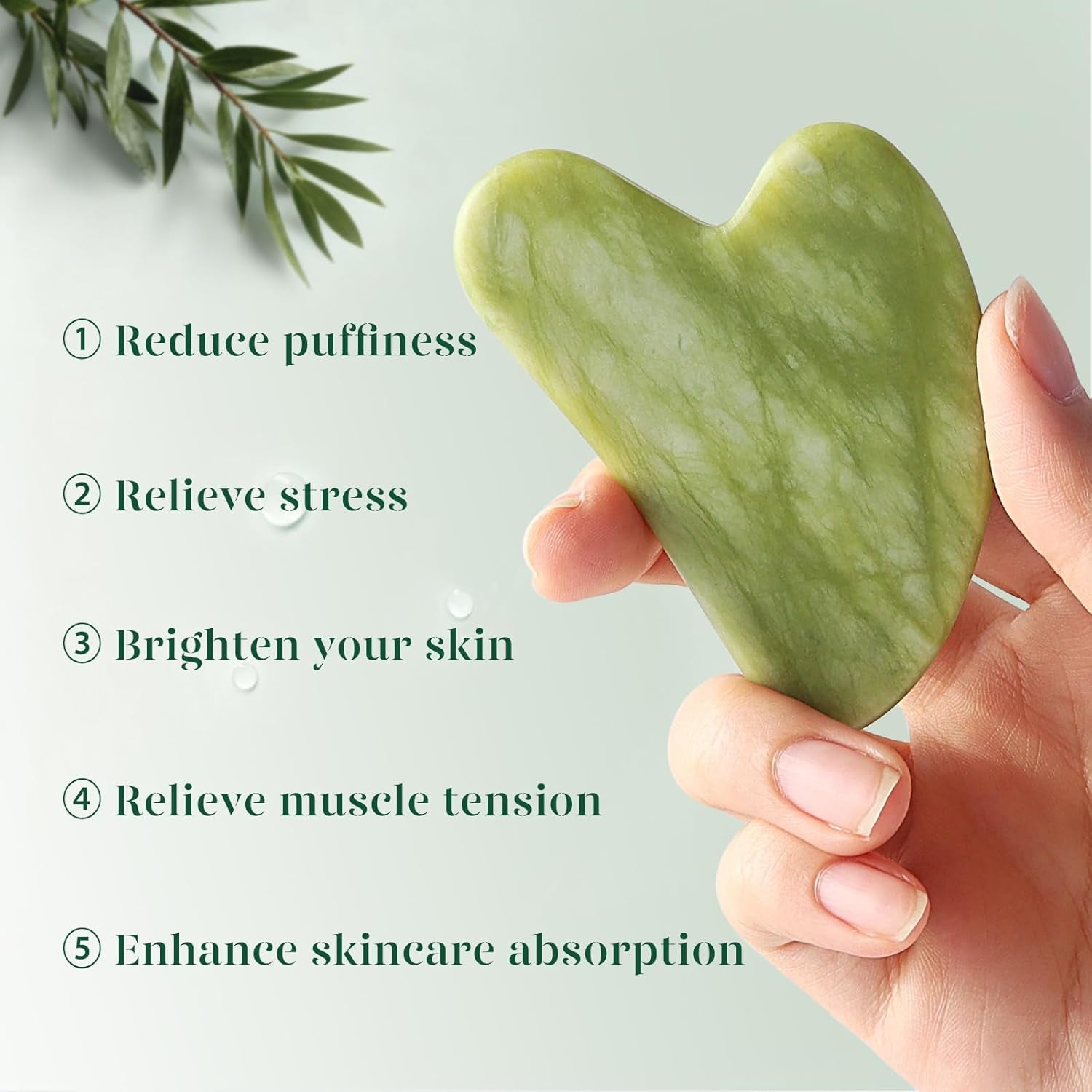 [Smooth & Ergonomic gua sha Tools] Gua sha facial tool , featuring ergonomic design and smooth edges,the jade roller glide smoothly, no squeaks, with a cool energizing feelοΌenhance skincare absorption