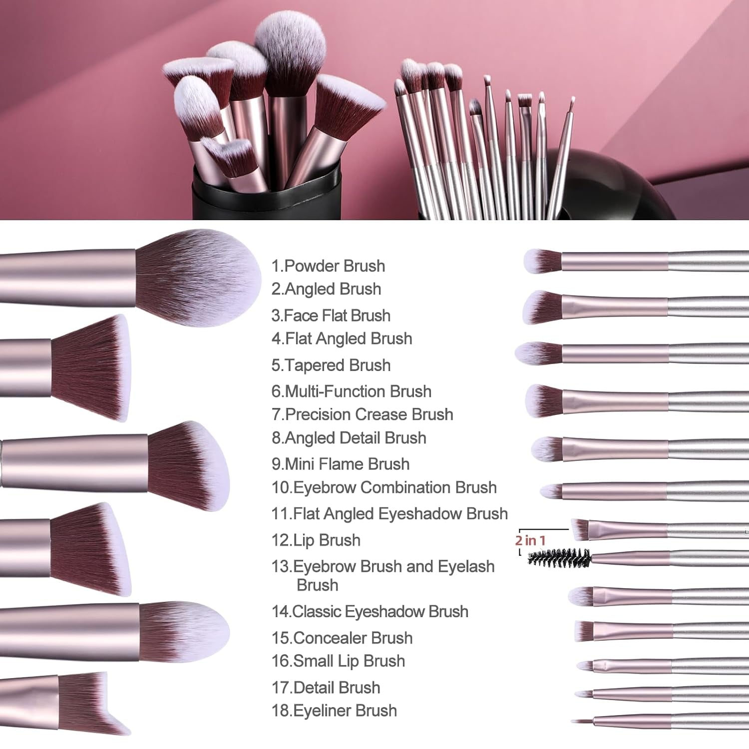 π§ΆUpgrade Your Beauty Routine With This 18-piece Professional Makeup Brushes Set, Designed For Flawless Application Of Liquid Foundation, Concealer, Blush, And Eyeshadow. Perfect For Both Beginners And Pros!